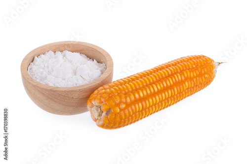 White Corn flour powder a popular food ingredient used in baking and for thickening sauces or soups isolated on white background.