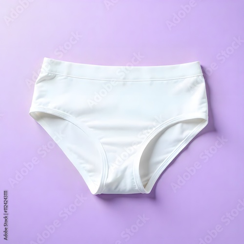 white cotton underwear. Top view photo of white cotton classic panties on isolated pastel violet background.