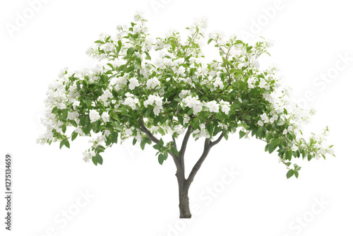 White Flower Tree Blooms Abundantly in Springtime, Nature's Beauty in Full Glory