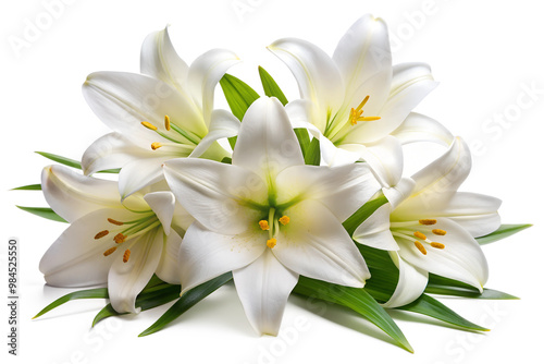white, lily, bouquet, delicate, elegant, form, flower, floral, bloom, plant, nature, spring, fresh, fragrance, garden, botanical, pure, wedding, celebration, symbol, innocence, purity, joy, life, love, romance, arrangement, closeup, macro, photo, still, design, green, yellow, flocked, no people, nobody