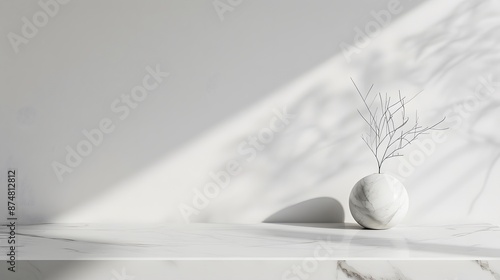 White marble table top or counter with blurry shadow on wall background. defocused template mock up display montages product.