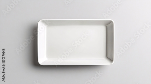 white, plate, dish, ceramic, porcelain, empty, blank, clean, kitchen, tableware, serving, tray, background, minimalist, simple, modern, isolated, studio, food, baking, dinner, dining, rectangle, square, border, rim, edge, smooth, sleek, shiny, glossy, bright, neutral, light, grey, grey, tabletop, flat, top, view, overhead, still life