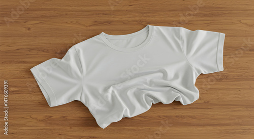 White T-Shirt on Wooden Surface with Wrinkles and Creases