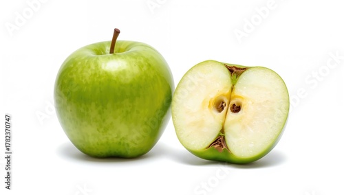 Whole And Sliced Green Apple Isolated On White, Fiber-Dense Choice