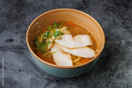 chicken, soup, noodle, bowl, broth, hot, savoury, fresh, garnish, greener, carrot, vegetable, kitchen, meal, lunch, dinner, food, cookery, asian, noodle, comfort, home, family, cafes, texture, warm, cosy, spice, alimentary, herbal, seasoning, dish, receipe, chef, epicure, dinnerware, kitchen utensile