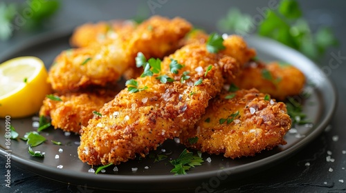 Wiener Schnitzel : A close-up shot of a perfectly breaded and crispy Wiener Schnitzel.