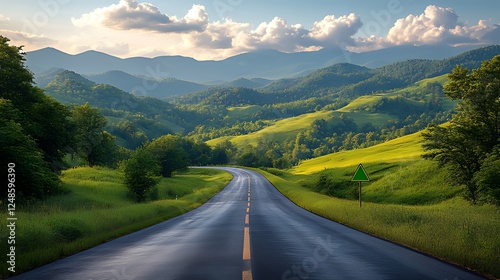 road, mountain, landscape, sunset, journey, travel, winding, asphalt, scenic, highway, nature, drive, vacation, adventure, summer, green, hill, scenery, countryside, path, way, horizon, sky, cloud, view, freedom, explore, relaxation, open, destination, background, panorama, transportation, route, trip, beautiful, serenity, peaceful, exploration, escape, discovery, holiday, motion, curve