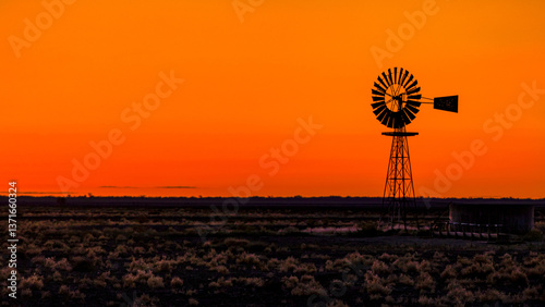 windmill, silhouette, orange, sunset, farm, water, rural, country, landscape, peaceful, sun, australian, black, drought, dry, outback, evening, road trip, dusk, pump, tank, water tank, blade, generator, climate