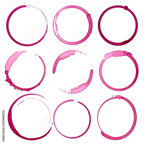 circle, ring, wine, stain, pink, red, abstract, pattern, design, graphic, digital, watercolor, textured, round, mark, spot, empty, collection, various, shape, pattern