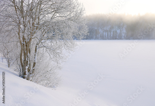 Winter landscape the frozen shores of Jonsvatnet lake near Trondheim, Norway., Europe