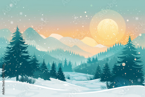 Winter landscape with snow and fir trees as vintage christmas wallpaper