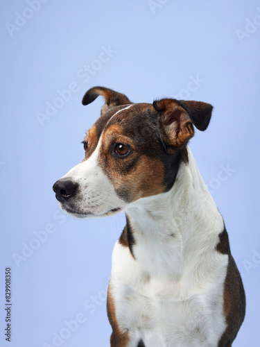 dog, attentive, gaze, studio, profile, pet, animal, character, half face, alert, canino, companion, indoor, domestic, brown, white, black, animal themes, no people, curious, watchful, intelligent, listening, contemplative, observant, mammal, furry, friends, poise, calm, serene, tranquil, expressive, loyal, vigilant, perceptive, thoughtful, awareness, calmness, peaceful, grace, charming