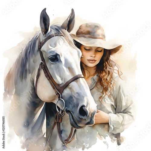 woman, horse, clip art, watercolor, generative, ai, detailed, white, young, person, female, animal, beauty, background, outdoors, lady, equestrian, brown, portrait, equine, nature, fast horse, ride, lifestyle, rider, pretty, fashion, caucasian, farm, countryside, horseback, model, face, country, love, sport, mare, stable, romantic, summer, active, adult, friendship, glamour, style, autumn, hair, cute, black