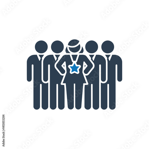 icon, woman, leader, star, group, team, success, professional, achievement, signs, symbol
