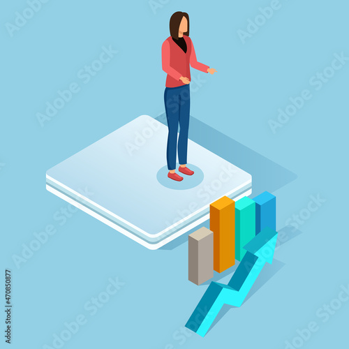 Woman Performing A Financial Report on Podium. Vector illustration