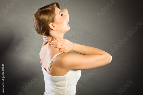 Woman suffering from neck pain
