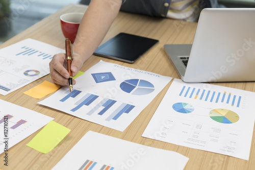 woman with laptop computer, document, pen, digital tablet and co