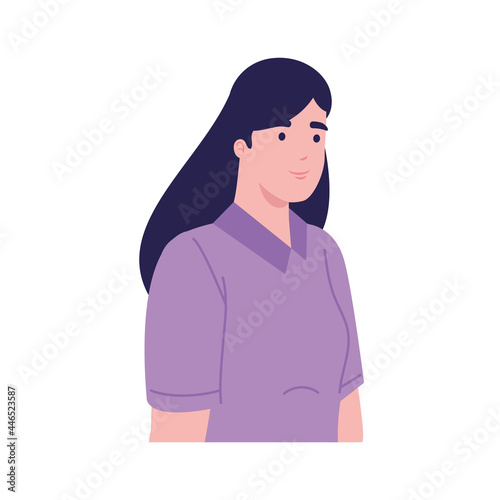 woman, happy, beauty, standing, young, lilac, colours, blouse, purple, attractive, adult, girl, cute, female, person, lady, model, portrait, pretty, character, vector, illustration, design, isolated