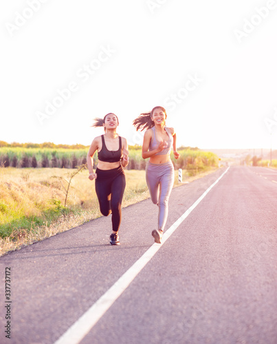 Women exercise happily for good health. Exercise concept