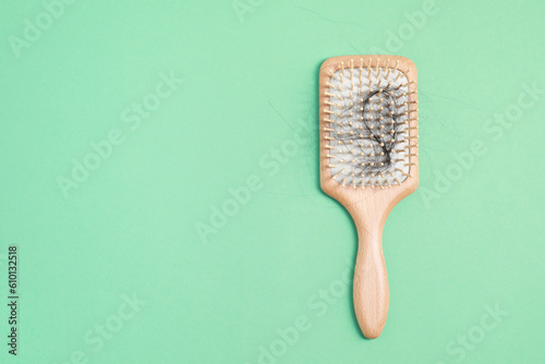 accessory, alopecia, background, balding, barber, beauty, brunette, brush, brushing, care, comb, combing, copy, cosmetic, disease, equipment, fallen, fashion, green, grooming, hair, hairbrush, hairdresser, handle, health, hygiene, disease, issue, lifestyle, light, loosing, loss, lost, massage, object, problem, professional, routine, salon, space, stress, style, styling, text, tool, top, treatment, view, wellness