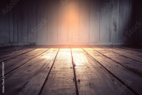 Wooden Floor with Spotlight: A dramatic spotlight illuminates a rustic wooden floor, creating a captivating and atmospheric scene ideal for product displays or presentations.