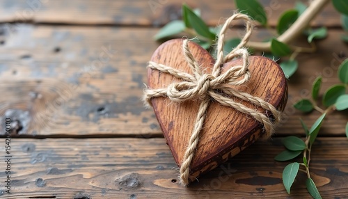 Wooden Heart with twine, rustic background