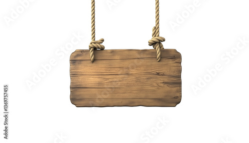 Wooden sign hanging with ropes isolated on transparent background