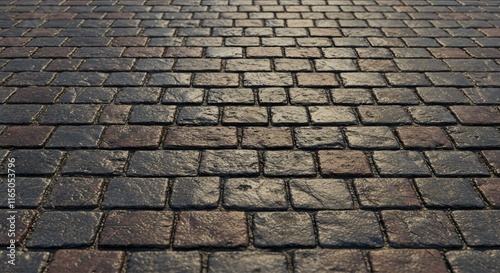 Worn cobblestone street texture with smooth surfaces and weathered edges