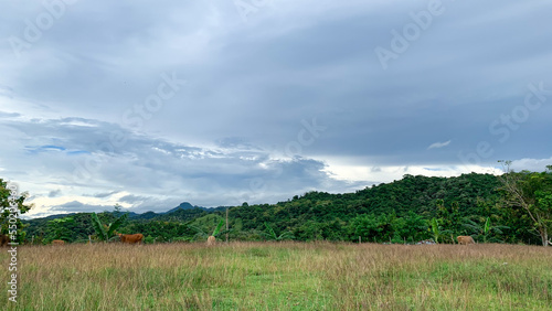 yard, farm, countryside, rural, meadow, grazing, cow, sky, field, grass, nature, cloud, cloud, summer, green, blue, tree, horizon, mountain, view, agriculture, hill, beautiful, forest, mountain, tree, spring, ranch, animal, landscape, lawn, bush, backyard