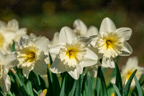 Yellow Daffodils flower field image for spring background