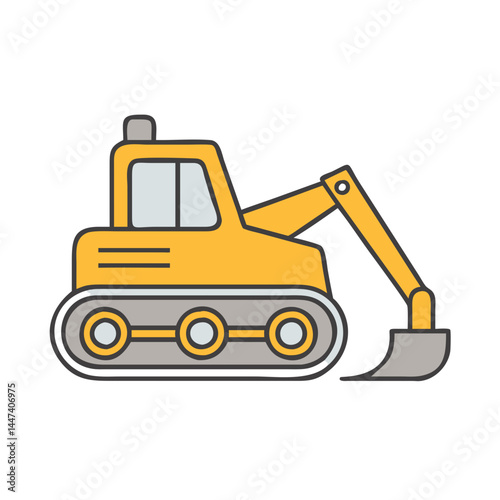 Yellow excavator digger vector illustration for construction equipment and machinery design needs