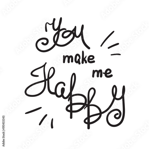 You make me happy - handwritten motivational quote, motivational illustrations. Print for inspiring poster, t-shirt, bags, logo, postcard, flyer, sticker, sweatshirt. Simple funny vector sign.