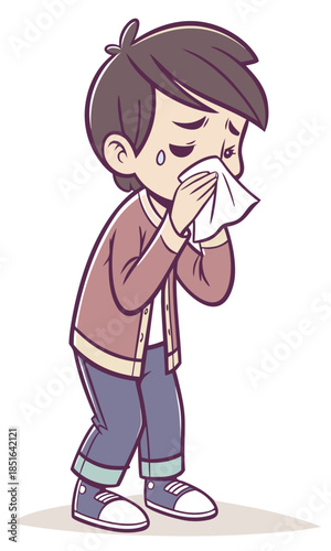 boy, sick, cold, tissue, nose, blowing, disease, unwell, children, children, sneeze, runny, health, virus, flu, symptom, sad, unhappy, cartoon, illustration, drawing, character, isolated, white, background, medicals, hygiene, care, seasonal, allergy, infection, fever, cough, painfully, throat, discomfort, pain, weak, sleepy, sniffle, mucus, paper, handkerchief, clean, germ, widener, prevention, treatment