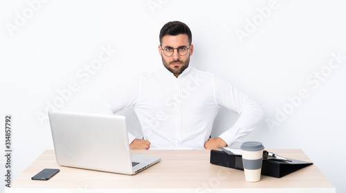 table, office, laptop, computer, technology, notebook, tech, work, cyberspace, man, man, people, person, male, photogenic, adult, isolated, business, businessman, men at work, manager, businessperson, boss, anger, angry, annoyed, bad, disappointed, expression, frustrated, frustration, mad, problem, sad, stressed, unhappy