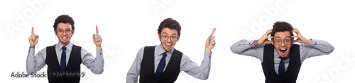 Young businessman in funny concept on white