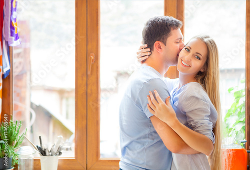 Young couple hugging in the kitchen