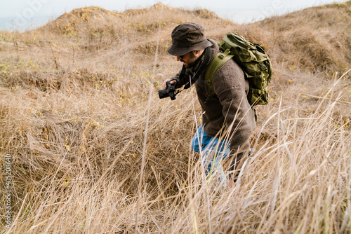 man, people, guy, photographer, outdoors, camera, using, photo, strolling, walking, focused, serious, concentrated, caucasian, young, unshaved, photogenic