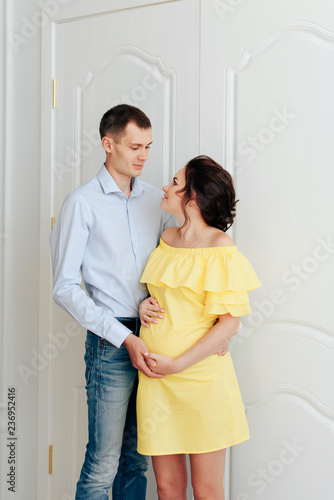 young married couple waiting for a miracle, pregnant wife with her husband