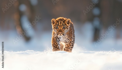 leopard, snow, wildlife, nature, animal, winter, forest, snow leopard, cute, baby, young, walking, path, sunshine, glacé, cold, sharpened, blur, brown, orange, spotted, predator, mammal, arctic, photo, beautiful, conservation, endangered, species, nature scene, environment, image, capture, moment, stunning, amazing, beauty, photo, scene, fresh