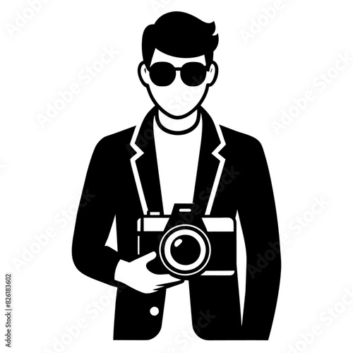 young stylish photographer Standing with holding a DSLR Camera vector silhouette