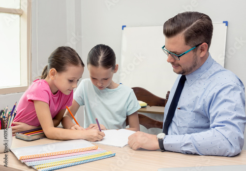 teacher, children, school, student, classroom, male, girl, uniform, education, caucasian, young, adult, teaching, man, children, class, schoolgirl, primary, people, female, happy, elementary, father, help, lesson, little, desk, home, daughter, portrait, father, tutor, goggles, hipster, profession, job, back to school, eltern, family, 2, three, study