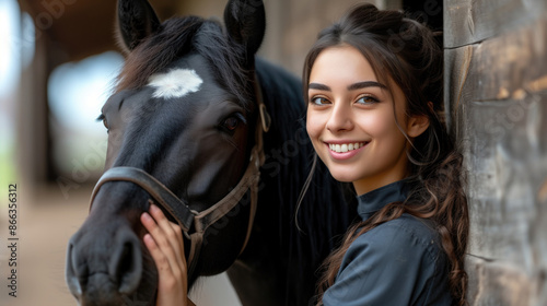 woman, smiling, horse, rustic, stable, young, girl, brunette, petting, friendship, animal, barn, nature, countryside, equestrian, outdoors, portrait, farm, equine, serenity, bond, peaceful, relaxation, equestrianism, happiness, friendly, natural, wooden, pasture, sunlight, beauty, lifestyle, carefree, joyful, leisure, rural, companionship, harmony, love, togetherness, summer, vibrant, healthy, connection, scenery, idylli, grooming