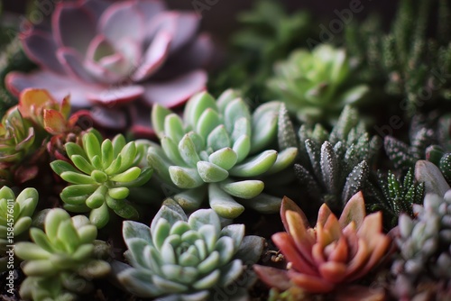 Zoomed in image of various succulents