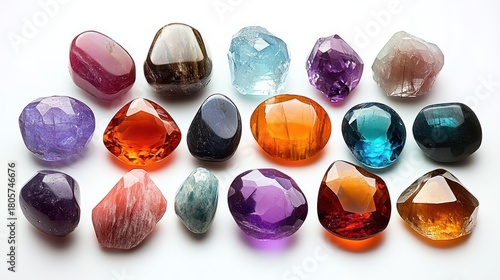 gem, white background, sparkling, shiny, closeup, amethyst, citrine, topaz, garnet, quartz, luxury, elegant, collectable, precious stone, ornament, display, studio photographySHARE