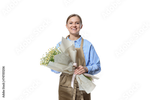 composition, order, cardboard box, nature, floristry, copy, table, space, botany, course, cabinet, text, gardening, apron, workplace, occupation, smiling, business, ribbon, retail, workshop, florist, manager, isolate, closeup, floral, person, employee, profession, white, decor, plant, bouquet, flower, individual, vocation, shop, assembly, scissors, selection, sheet, entrepreneur, professional, woman, tape, wedding, accounting, storeSHARE