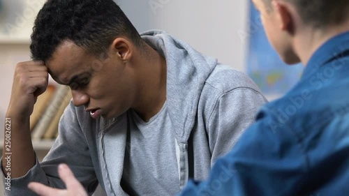 Canvas Prints: Teenager scolding his silent depressed friend, high school relationship problems