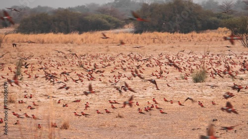 flock, carmine, bird, bee-eater, flying, southern, dried, field, namibia, africa, sky, wildlife, nature, flight, aerial, colourful, migration, landscape, action, wilderness, peaceful, outdoors, fauna, vibrant, environment, natural, freedom, serene, horizon, terrain, habitat, exploration, beauty, movementSHARE