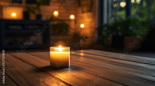 Galaxy Cases: Photo of a candle flame glows warmly on a wooden table, creating a cozy and peaceful atmosphere in the room