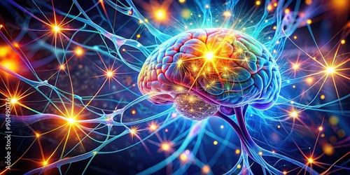 Galaxy Cases: Vibrant, abstract illustration of a human brain with glowing neurons, synapses, and thought bubbles, symbolizing creativity, intelligence, and cognitive function in a stylized, futuristic design.
