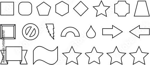 Greeting Cards: Abstract and basic shapes collection. Vector basic shape. Geometric formal shape. Polygonal elements. Modern trendy minimalist basic figures, lines, circles, hexagon, star, triangle flat style. Vector